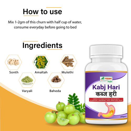 1. Kabj Hari: The best ayurvedic medicine for constipation and gas. Consumption of this churna will ease down the abdominal pain during stomach-related issues and help you get rid of the regular issues.