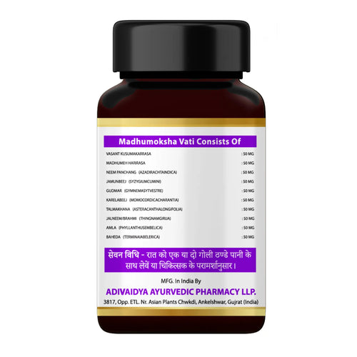 MADHUMOKSHA VATI MANUFACTURER : ADIVAIDYA AYURVEDIC PHARMACY LLP. , Ankleshwar Gidc, Gujarat - 393001