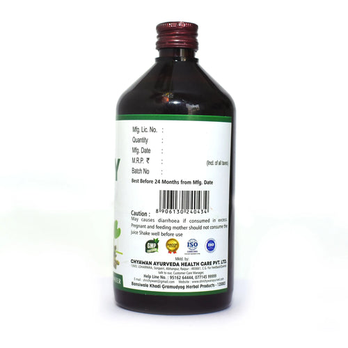 For kids, 5-10ml. For adults, 10-20ml of Giloy juice, thrice a day or as directed by the physician.