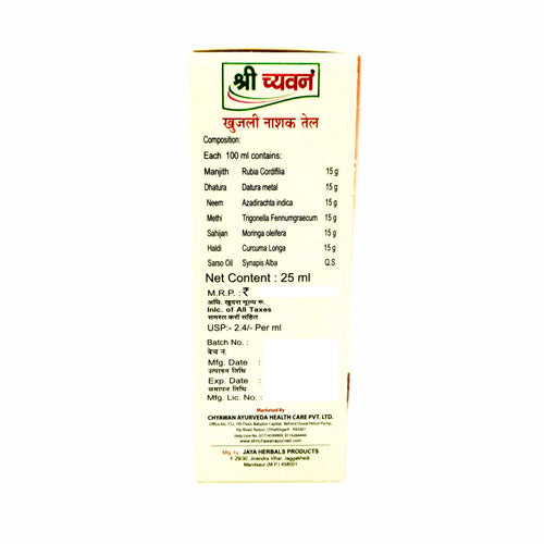 4. Itching free oil consists of Manjith/Rubia Cordifolia, Dhatura. Neem, Methi, Sahjan, Haldi and Sarso oil.