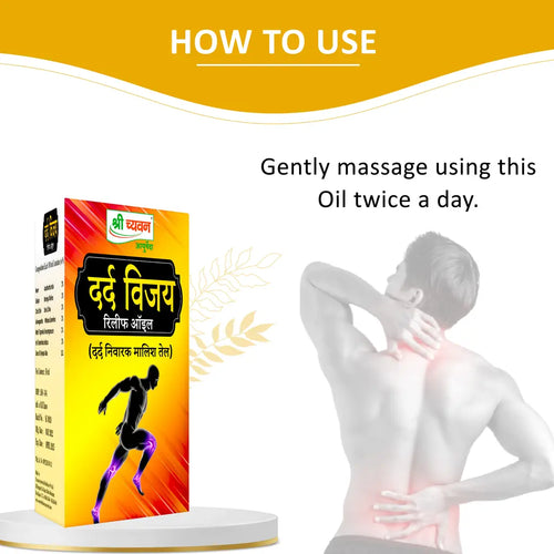 Ingredients: Dard Vijay Relief Oil consists of ingredients like Neem, Sahijan Chal, Chob Chini, Ashwagandha, Methi dana, Imli, Lahsun, Sarso Oil, Neem Oil, Kapoor, Piperment.