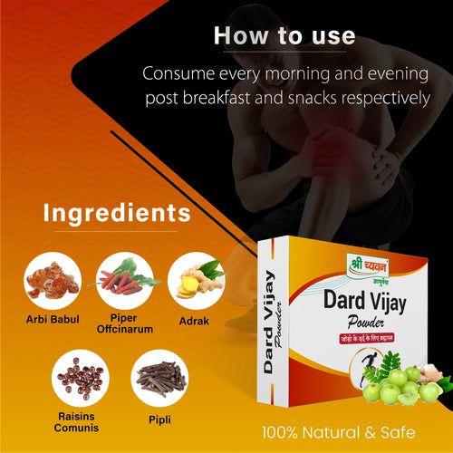 Ingredients: Dard Vijay Powder consists of ingredients like Kolichikam Liutium, Raisins Comunis, Pipli, Chitrak Haritaki, Piper of Cinerum, Adark, and Arbi Babul.