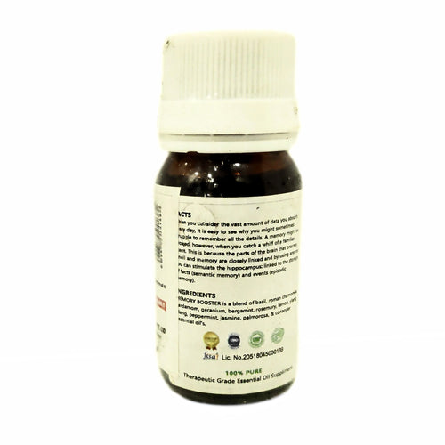 1. Memory Booster: Memory Booster is a blend of Basil, Roman Chamomile, geranium, bergamot, rosemary, lemon, Peppermint, Jasmine, Palmorosa, & Coriander essential oils.